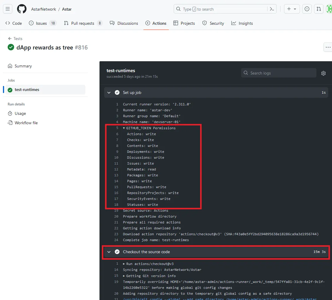 Anyone with write access to a repository can modify releases and assets, and in this case, as I demonstrated through the self-hosted runner vulnerability, anyone who submits a few typo fixes could achieve the same for Astar. Forget governance, forget democracy - just a bit of ChatGPT and a pull request.