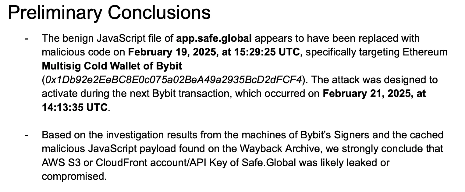 It turns out, that’s exactly how it happened. The preliminary report by Verichains confirmed that Lazarus used a compromised Safe credential to replace a set of Javascript files with a backdoor.